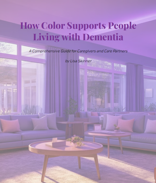 Color plays an important role in how individuals with dementia experience and navigate their environment. As vision and depth perception change, thoughtful use of color can reduce confusion, support independence, and promote emotional well-being. Calming tones such as blues and greens help create peaceful spaces, while warm colors like red and orange can stimulate appetite or draw attention to important objects. High contrast between surfaces improves safety by making edges, furniture, and pathways easier to see. By understanding how color affects perception and mood, caregivers can create environments that feel more comfortable, supportive, and dementia friendly. 12 pages